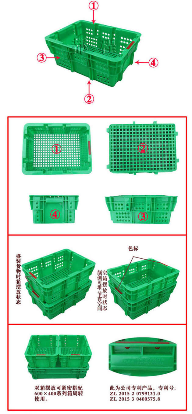 此為我公司專利產品,和268、269、270、271、272、276、277、278、279、290、(319、320、321待開發)等600*400系列周轉箱同為本專利產品,仿冒必究。